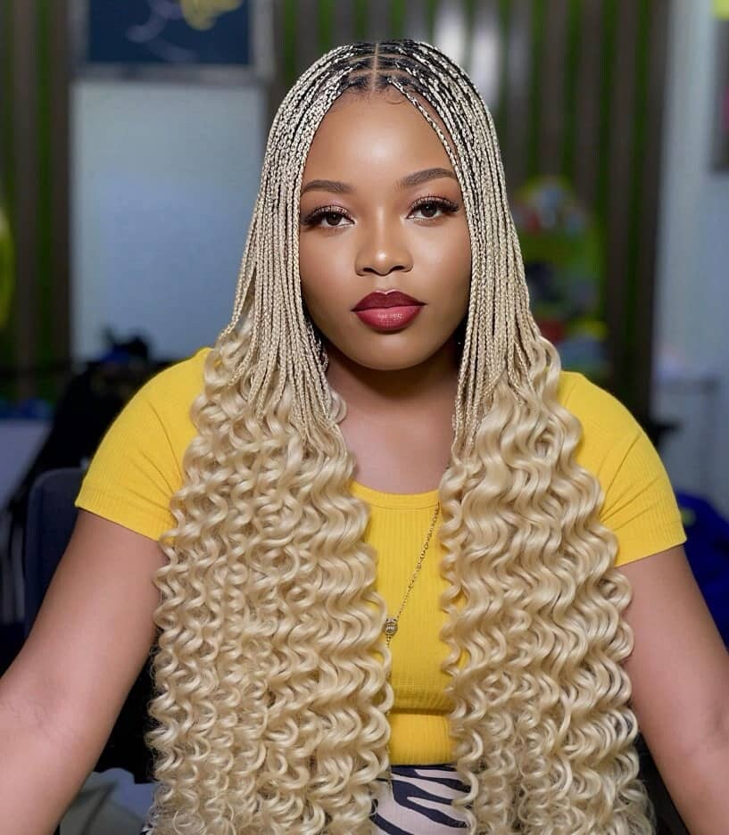 Braided wig made with full 360 lace end with curls